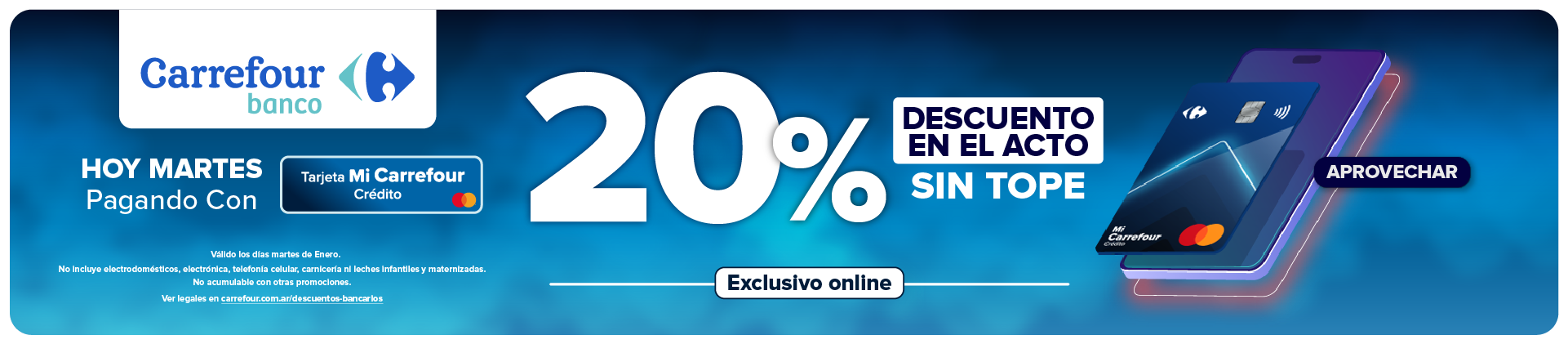 Hoy con Tarjeta Mi Carrefour crédito 20% de descuento en acto SIN TOPE